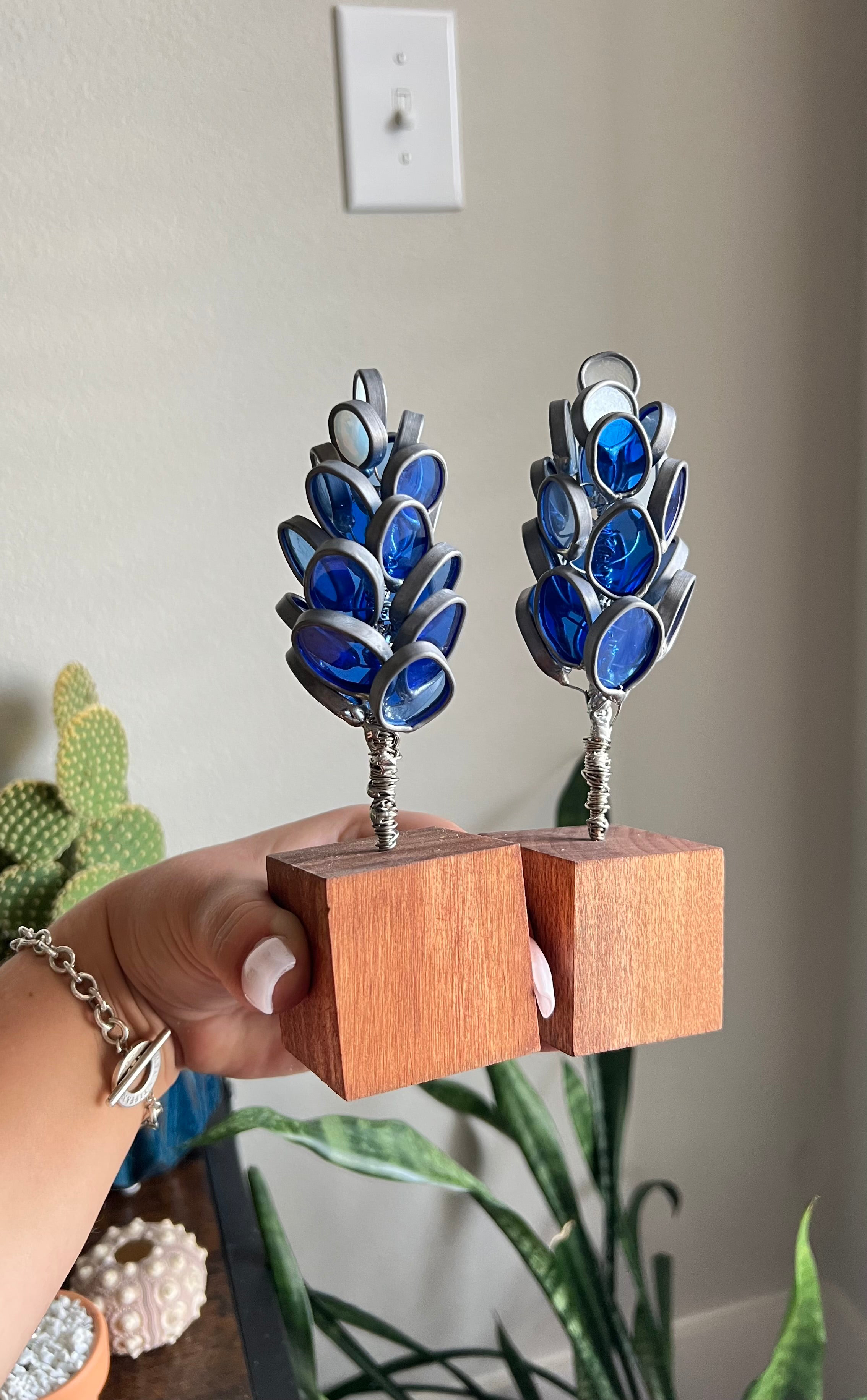 Kayla, the founder of Desert Willow Glass, is a stained glass artisan based in Texas. Since 2022, she has been working with the Tiffany-style copper foil method. Although she’s explored many art and craft mediums, none have resonated with her quite like stained glass. The process is complex & time-intensive, yet carries a beautiful simplicity that keeps her hooked on learning & pushing herself artistically.